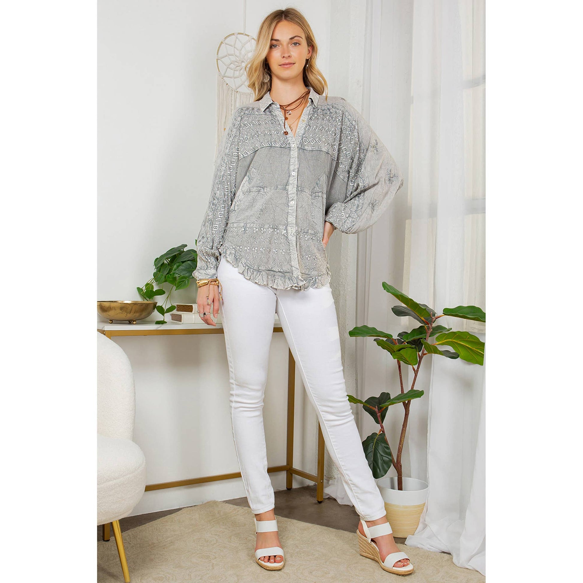 Relaxed Fit with Shirt Collar: Combines classic structure with boho ease.