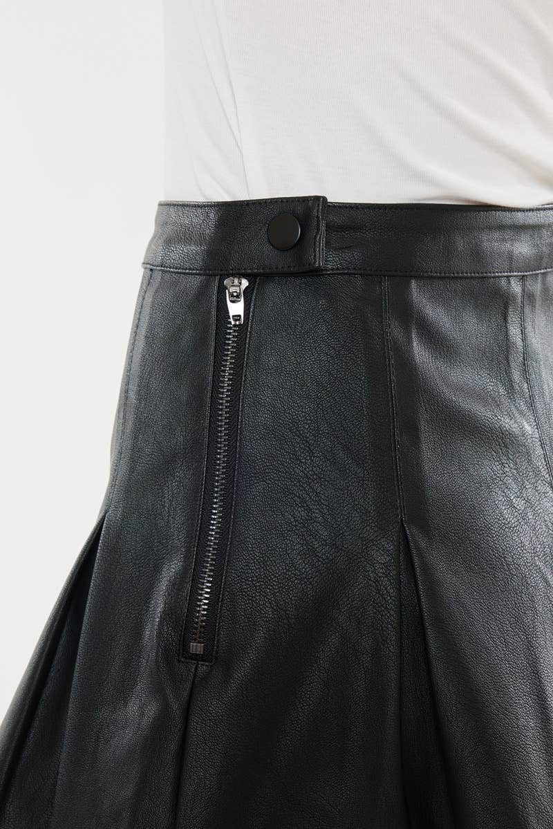 MID-RISE PLEATED BLACK PU SKIRTS