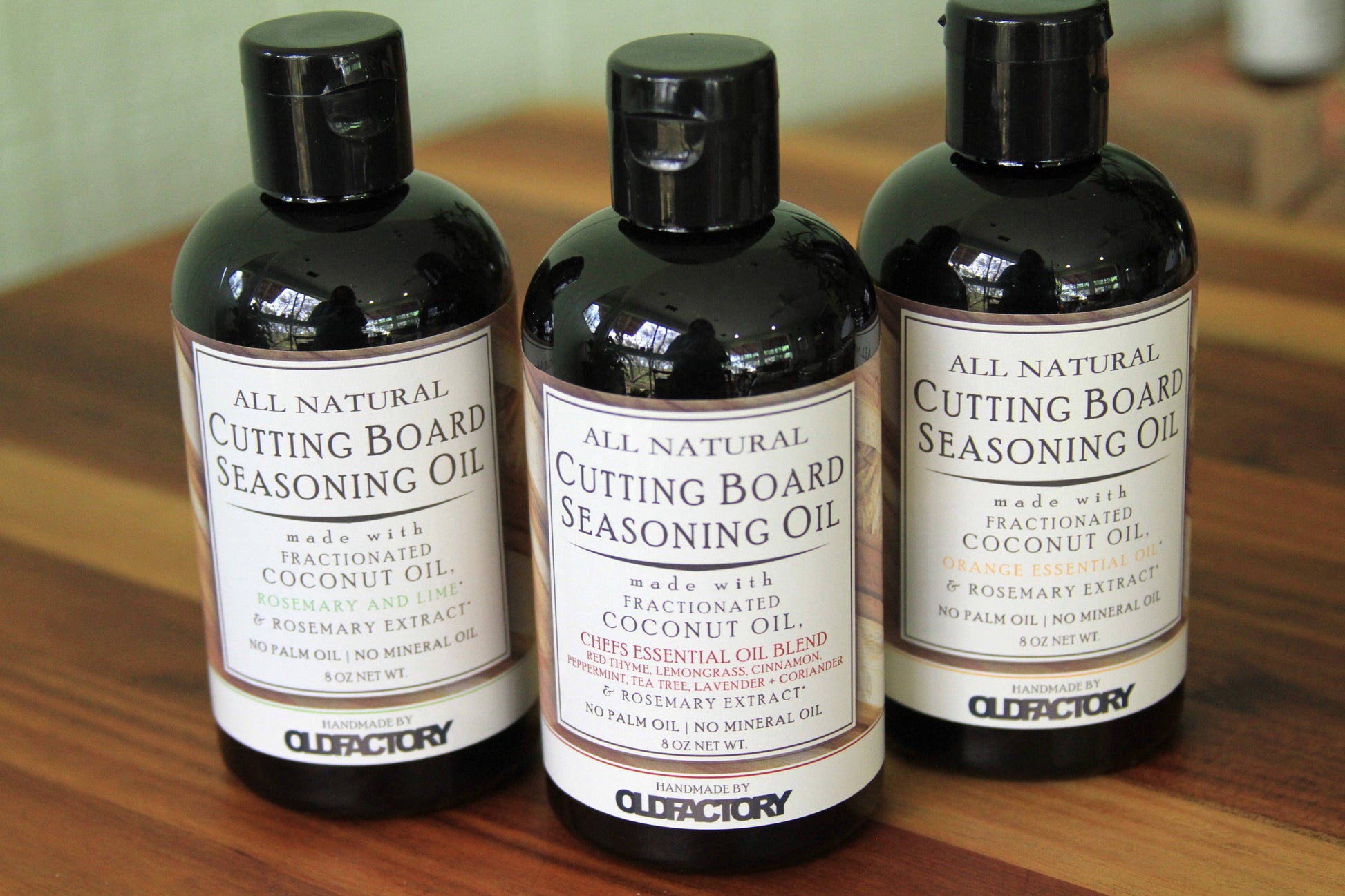 Maintain the beauty and function of your wood cutting board by oiling it with our all natural Cutting Board Seasoning Oil. Made with a combination fractionated coconut oil, essential oil and rosemary extract, this wood cutting board seasoning oil will protect your cutting board, making it last for years and years.