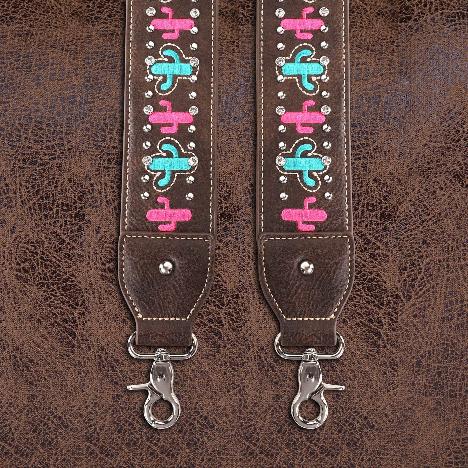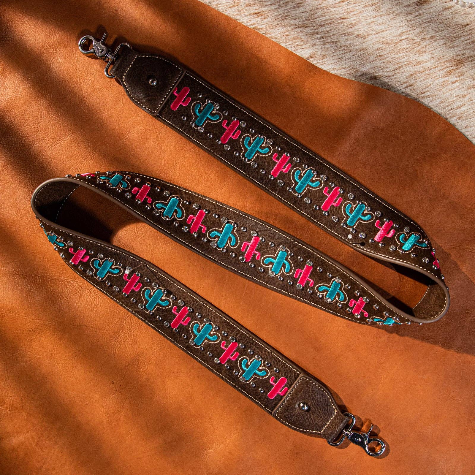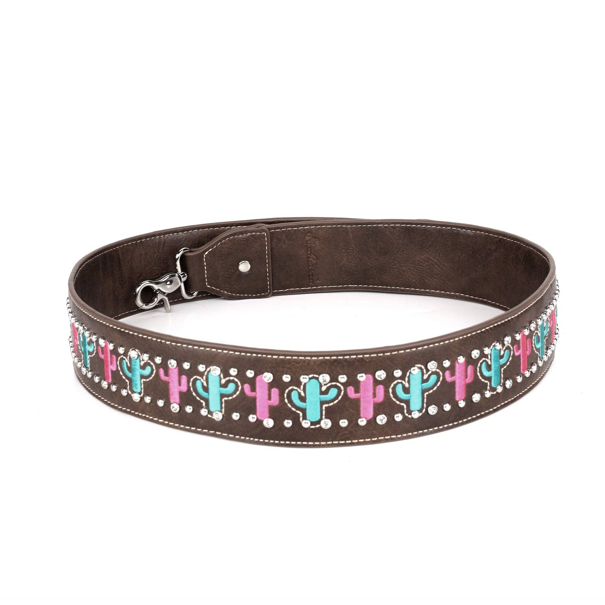 * Embroidered cactus on the strap