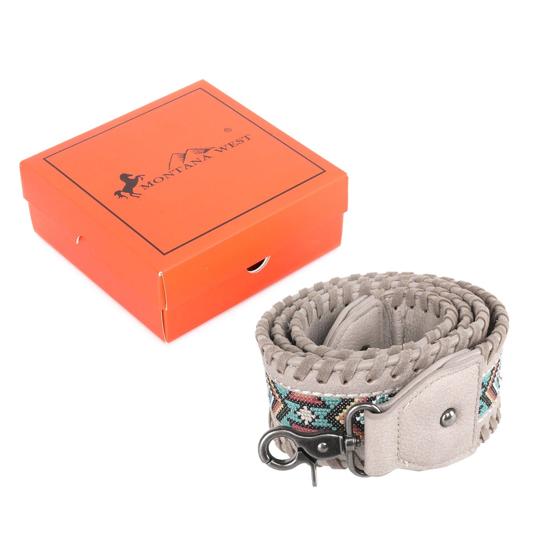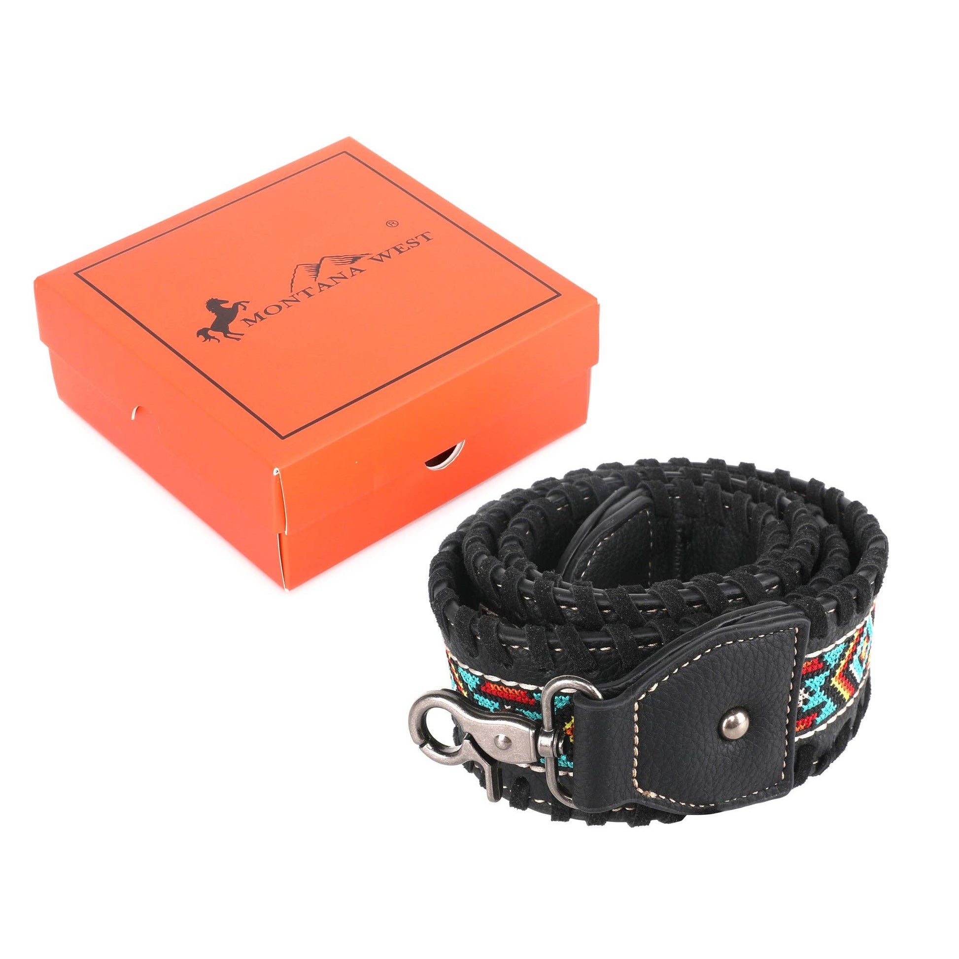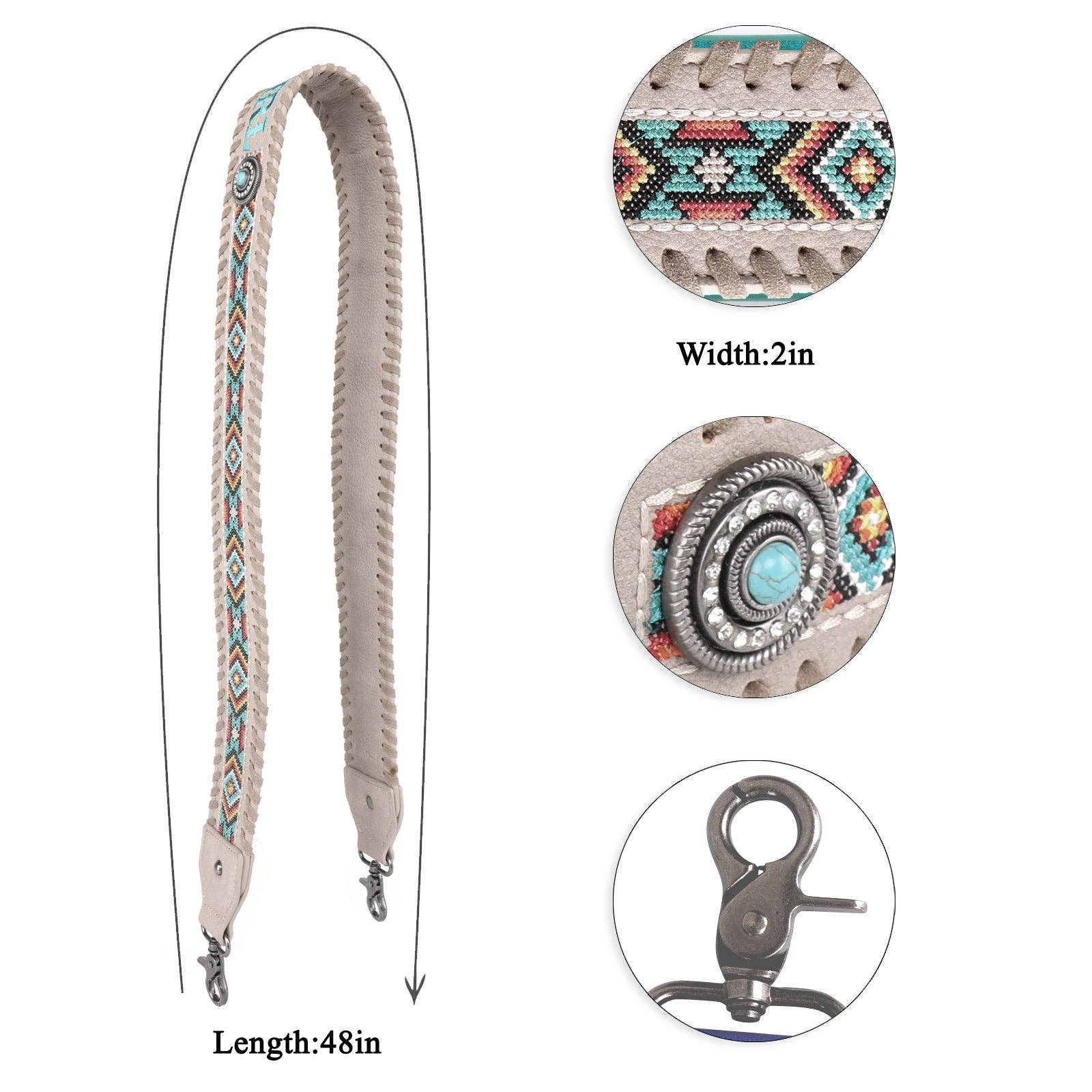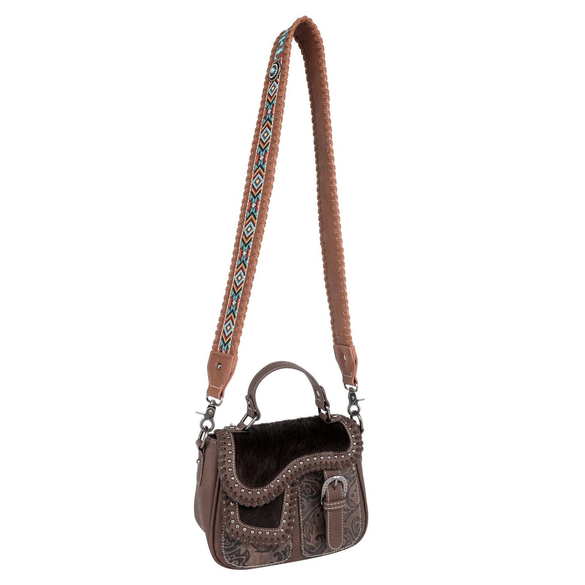 * Embroidered Aztec pattern and "COWGIRL" on the strap