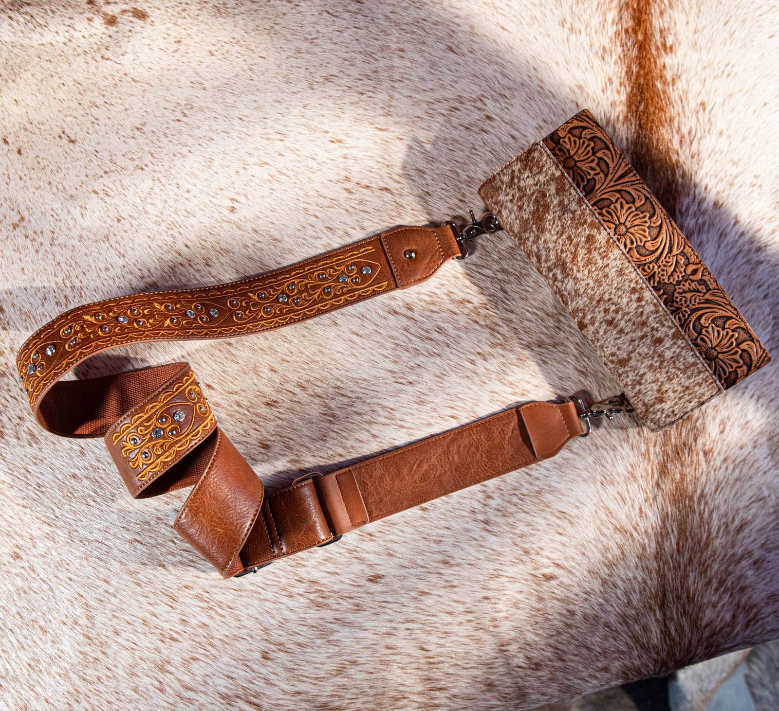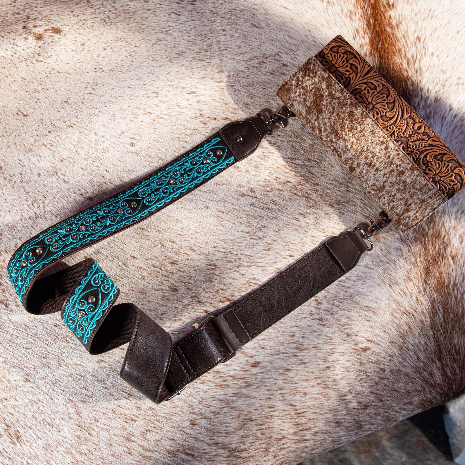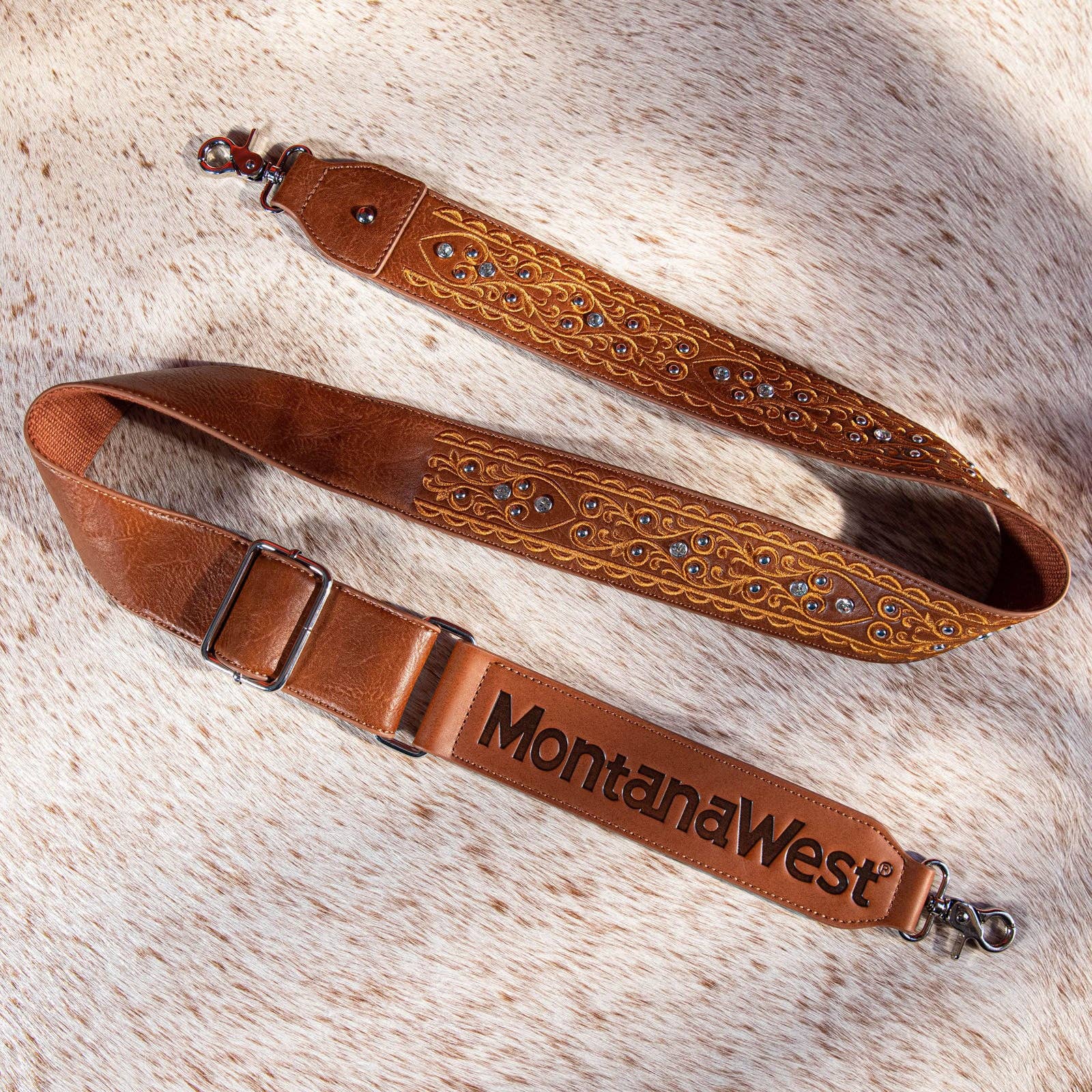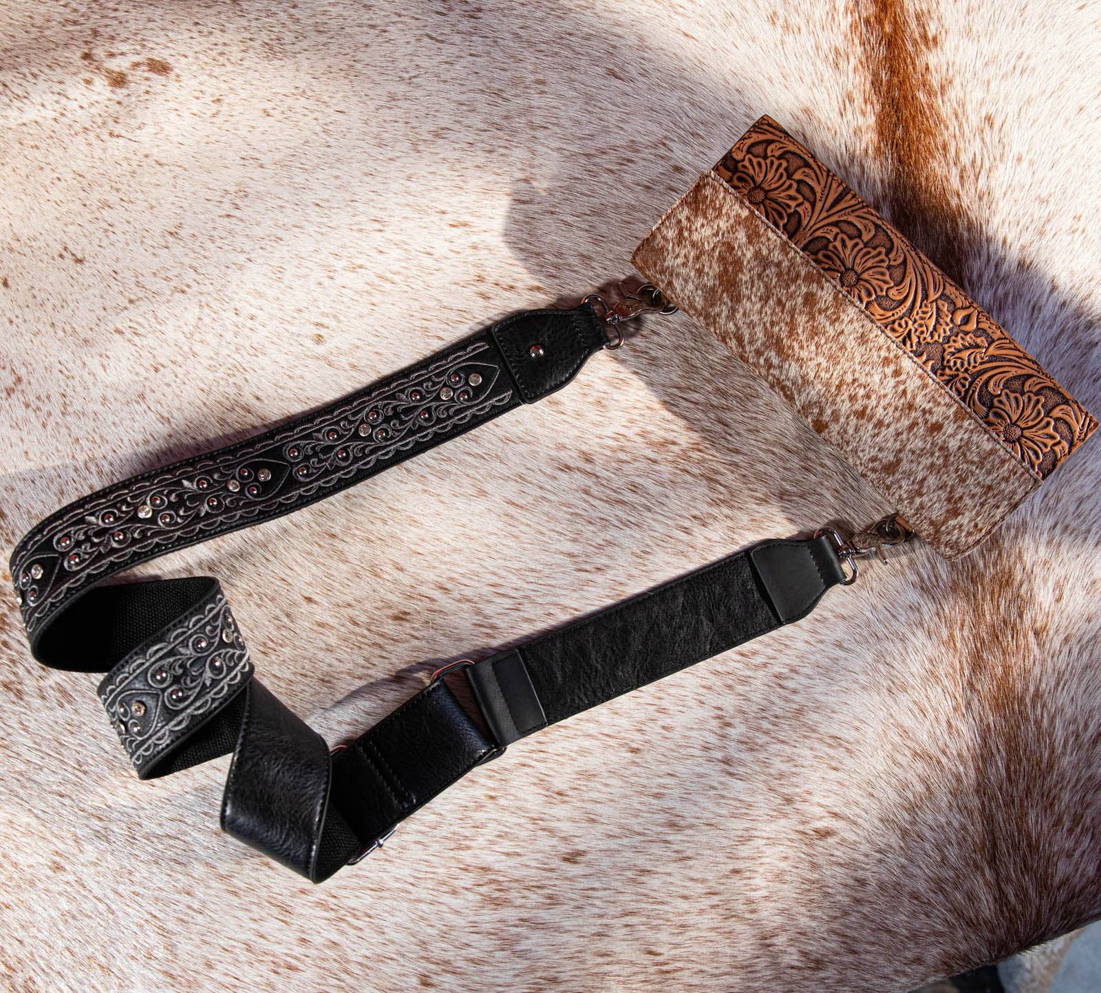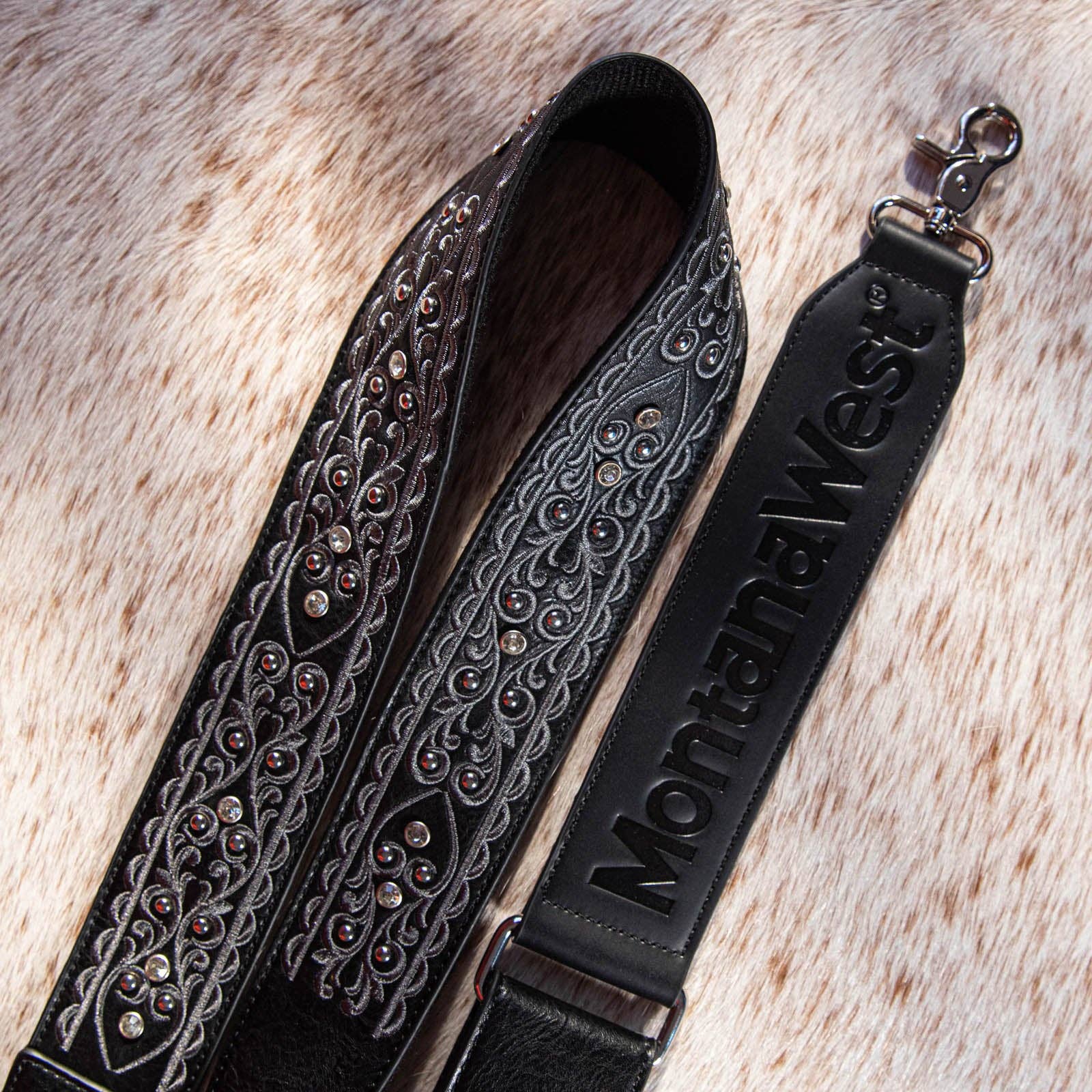 PST-2007 Montana West Western Guitar Style Embroidered Crossbody Strap -Black