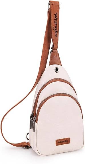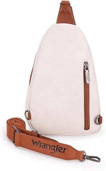WG87-227 Wrangler Sling Bag/Crossbody/Chest Bag Dual Zippered Compartment - Beige-Brown